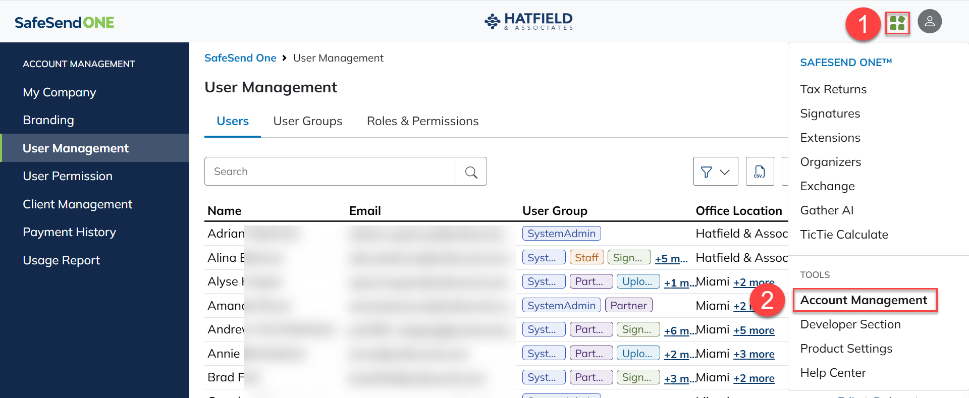 Access to the User Management dashboard is only available to System Admins or users with predefined permissions enabled in User Management.