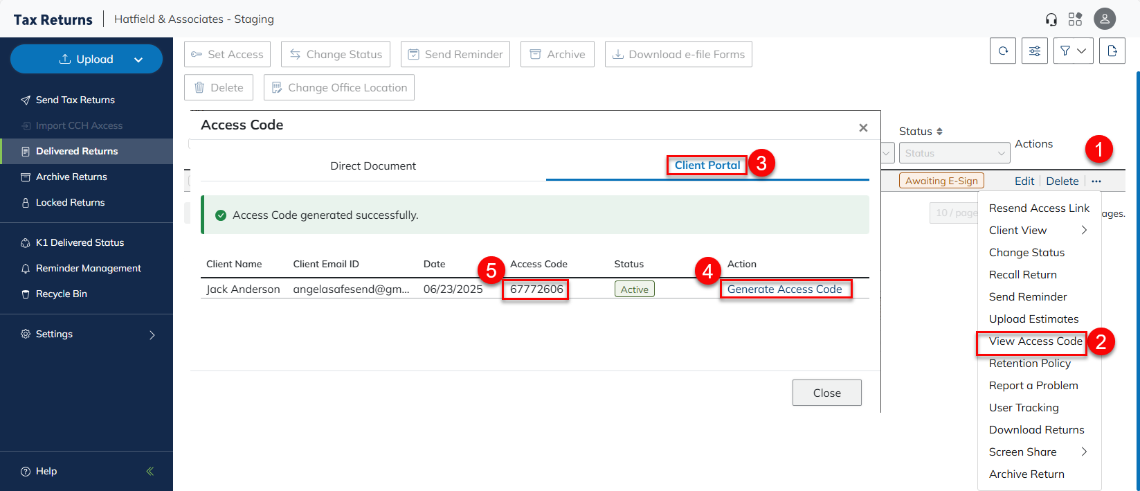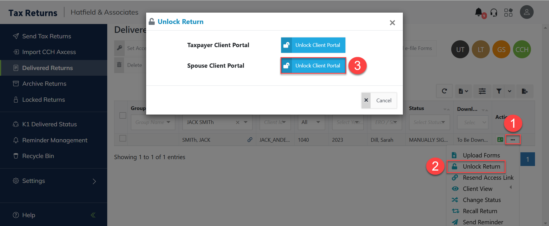 Taxpayers can become locked out of their Client Portal by entering an incorrect/expired access code OR an incorrect PIN. You can unlock their Client Portal access from any item delivered to that client.