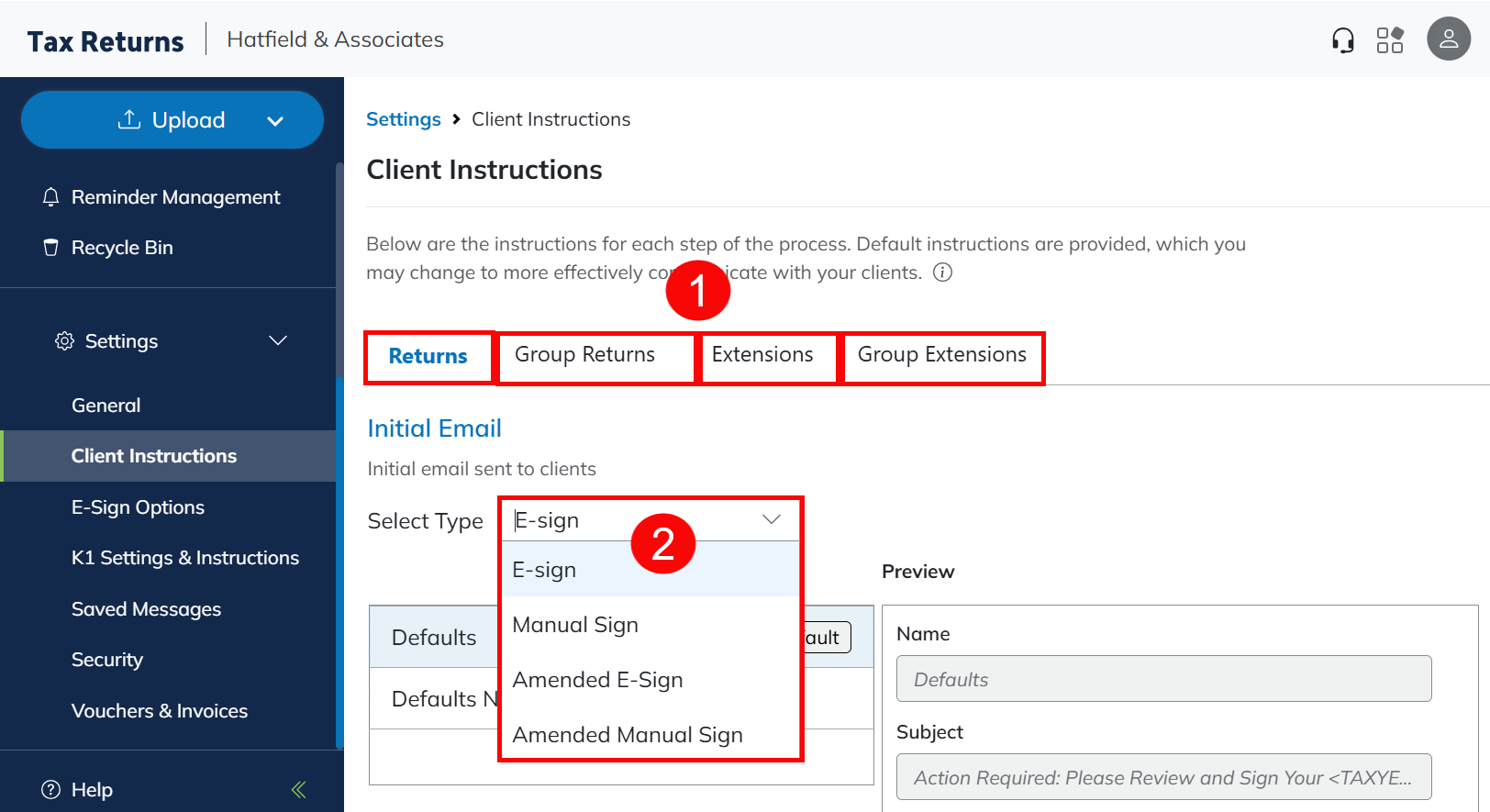 | Download E-Signed Forms | This message is sent to clients once all required parties have completed e-signing the forms in the return. |