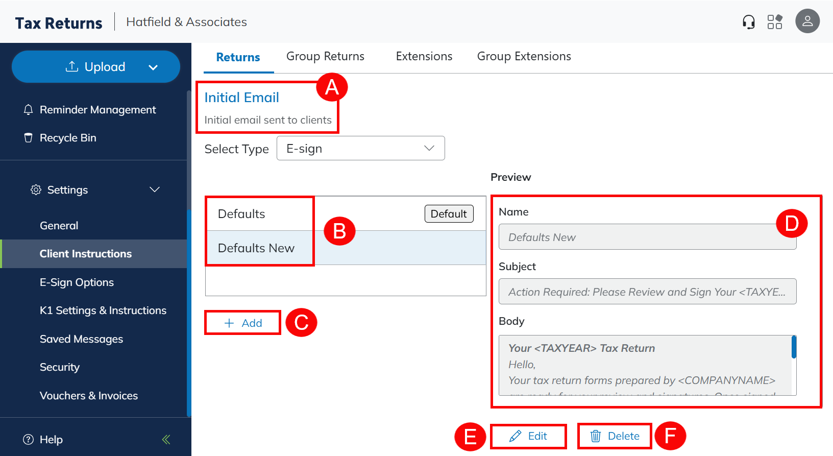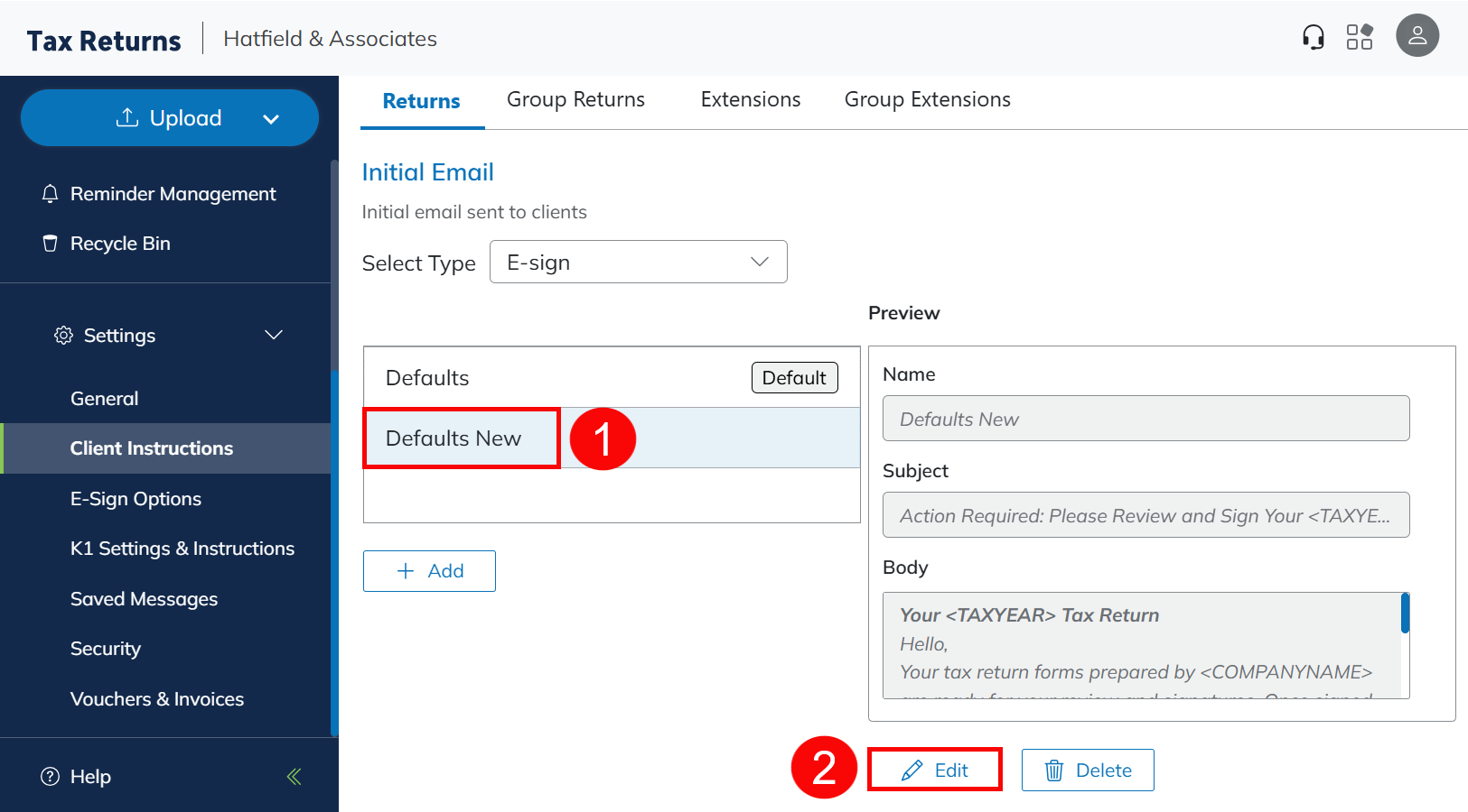 | Recalled Return Instructions | This email is sent to clients when the firm recalls their return for correction. |
