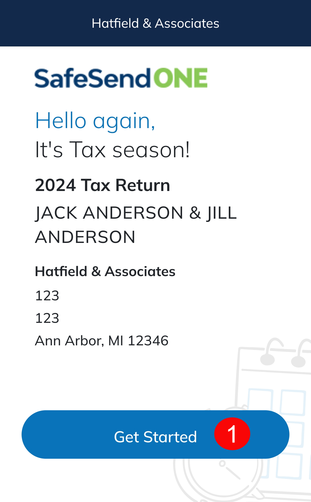 The taxpayer receives an email with a link to the designated tax return. All emails come from noreply@safesendreturns.com.