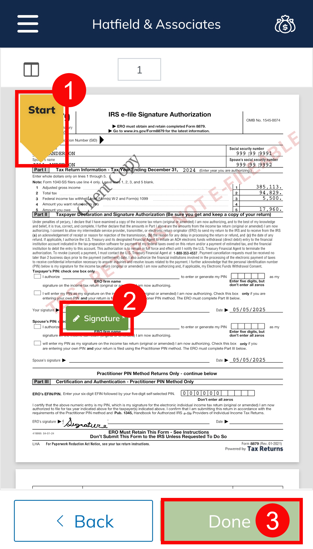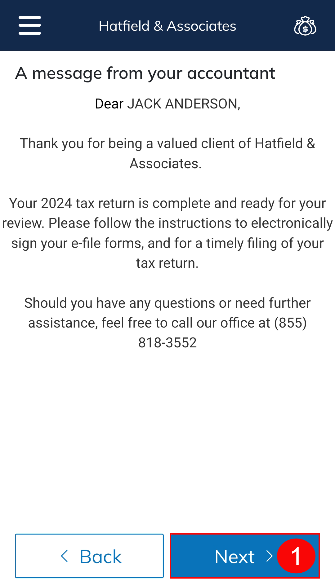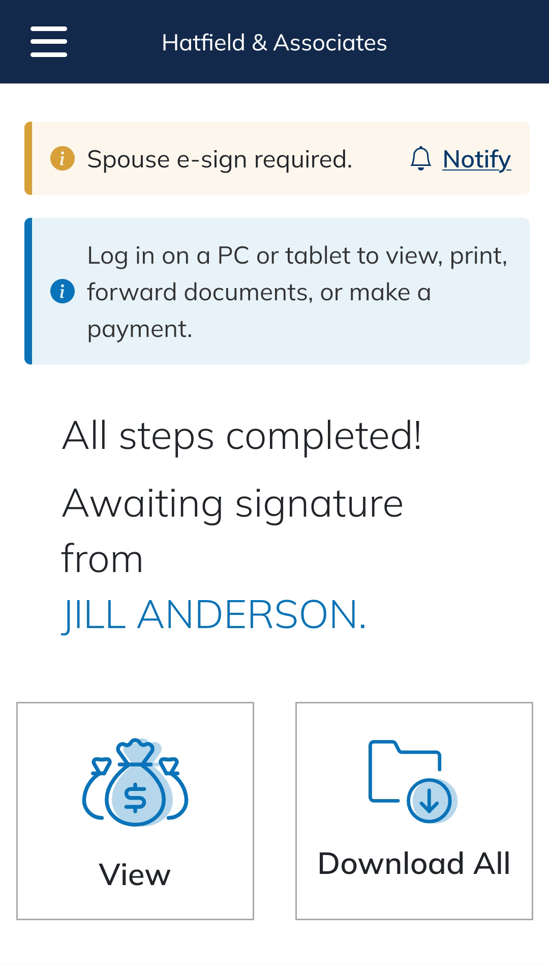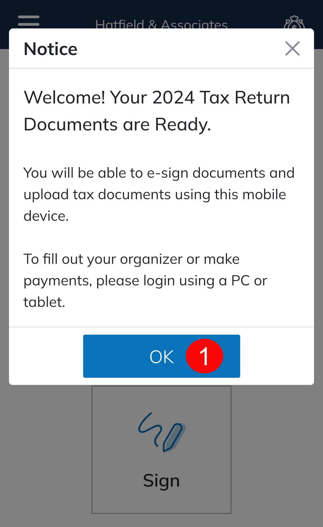 Taxpayers may review and sign their returns on a mobile phone instead of a computer. The client experience on mobile is outlined below.