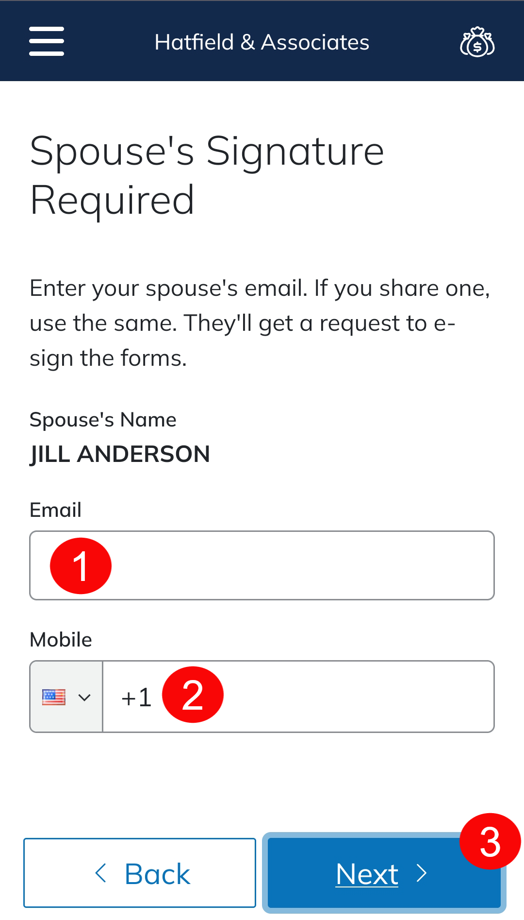 - Enter the Spouse's email address (for Married Filing Joint Returns only).