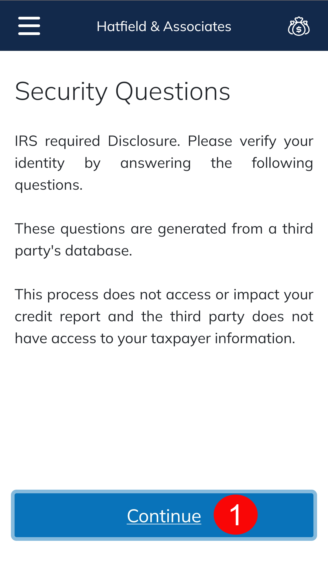 The knowledge-based authentication step only appears for 1040 returns that have this feature enabled.