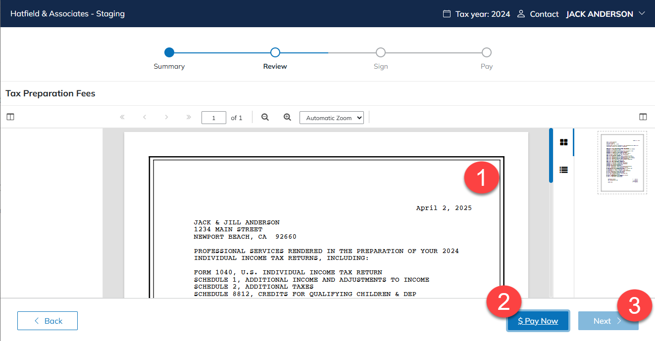 5. Click View Tax or Forward Tax Documents to be taken back to the review step.