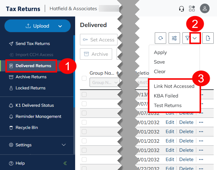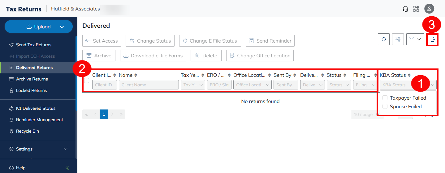 The Quick View Reports feature allows a firm to identify clients who have yet to access their returns and/or failed Knowledge-Based Authentication for easier follow-up. You may access this option in your Delivered and Archived Reports.