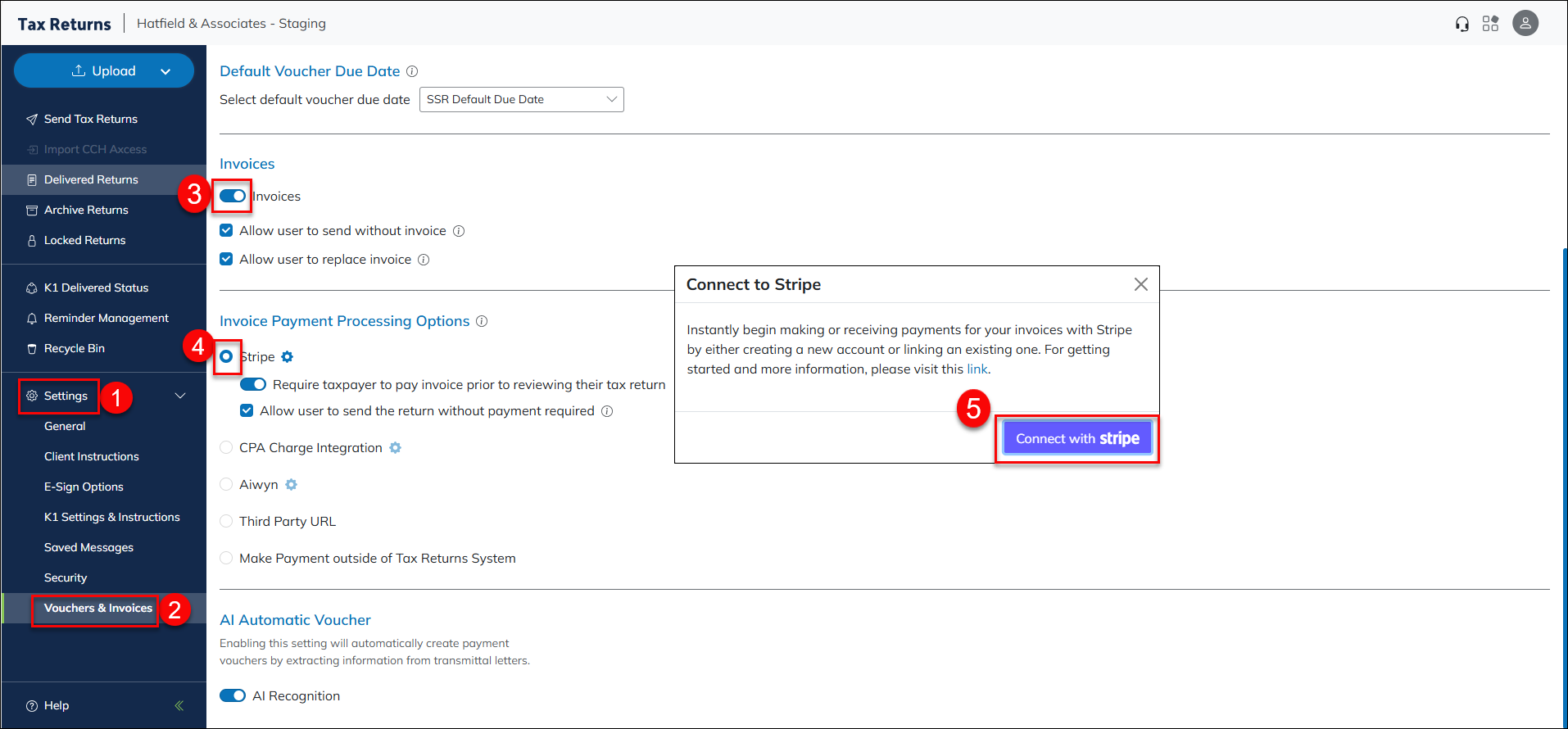 The Stripe integration allows firms to require clients to pay their invoice prior to continuing to the tax return. This article outlines how to enable the feature and settings options, as well as a preview of the Client Experience.