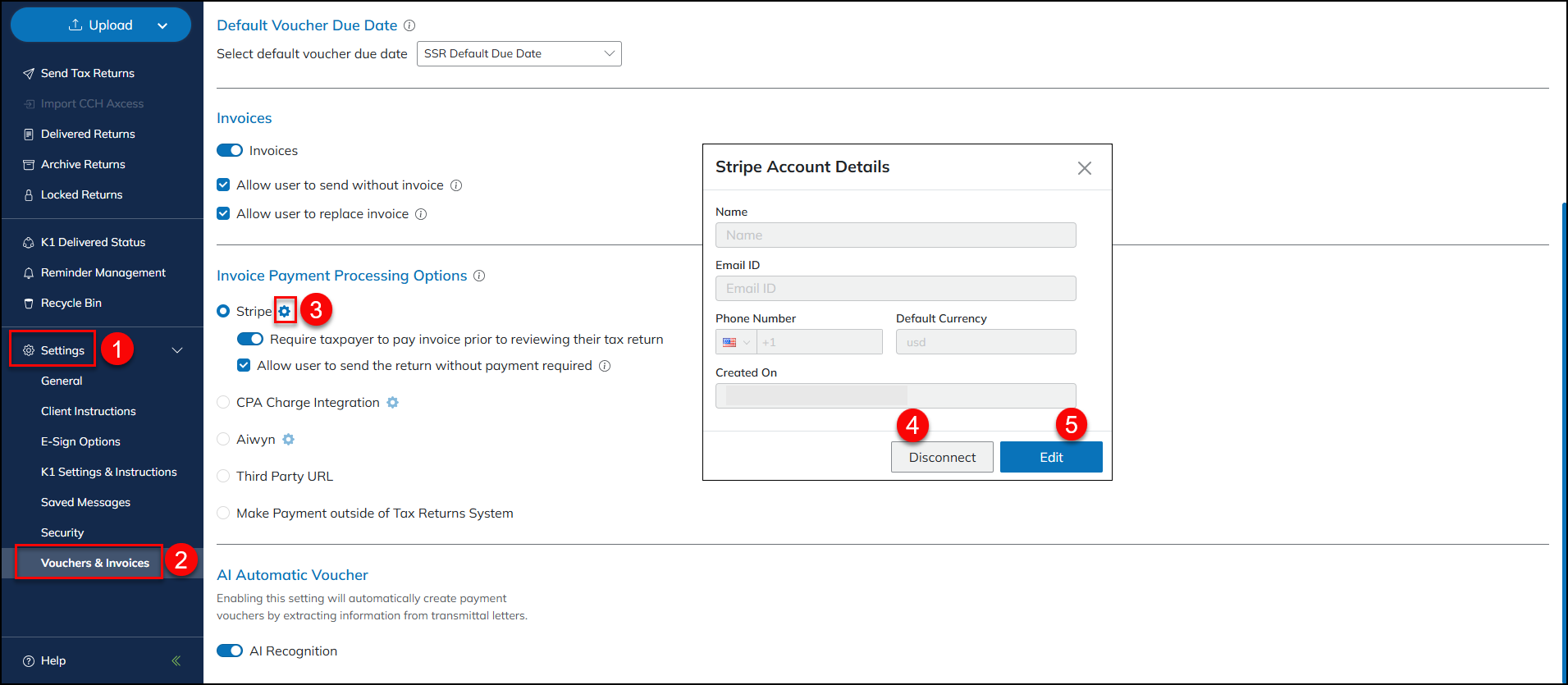 Once enabled, you will have a few options. These options will appear in the invoices tab during processing.
