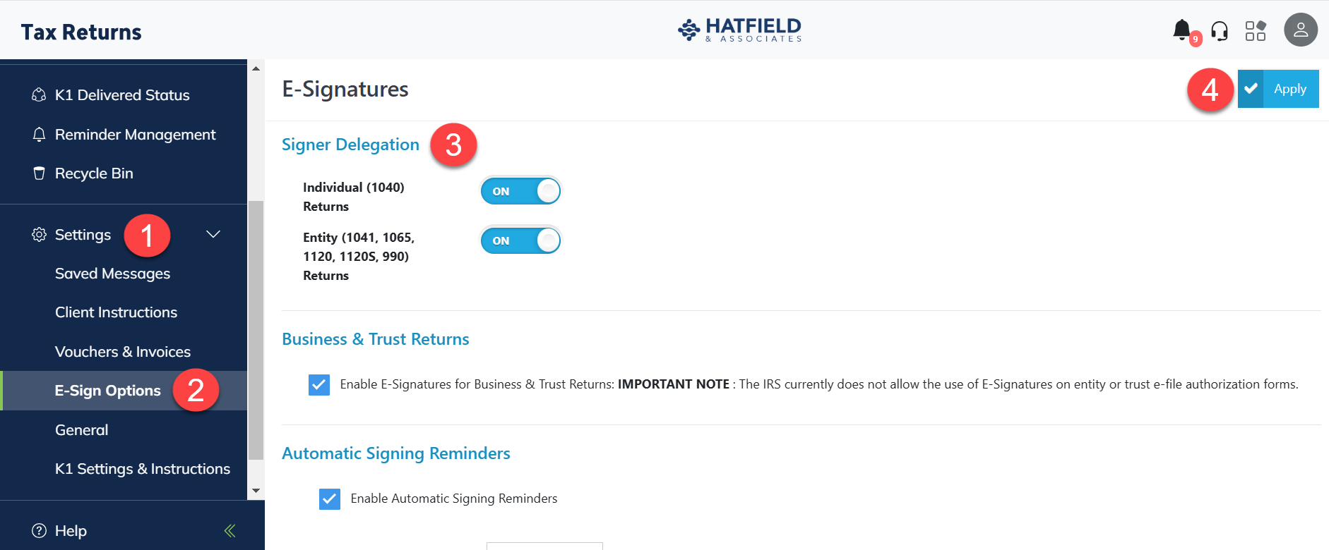 - Select Use Knowledge-Based Authentication to initiate the Signing Process for delegated signers under 1040 Knowledge Based Authentication.