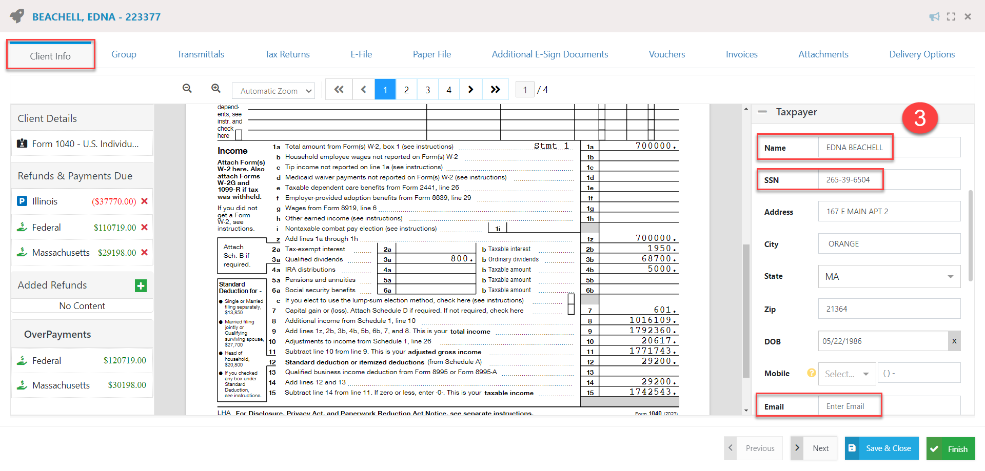 Name and Email: Used to identify a client if SSN/EIN and Client ID do not match.