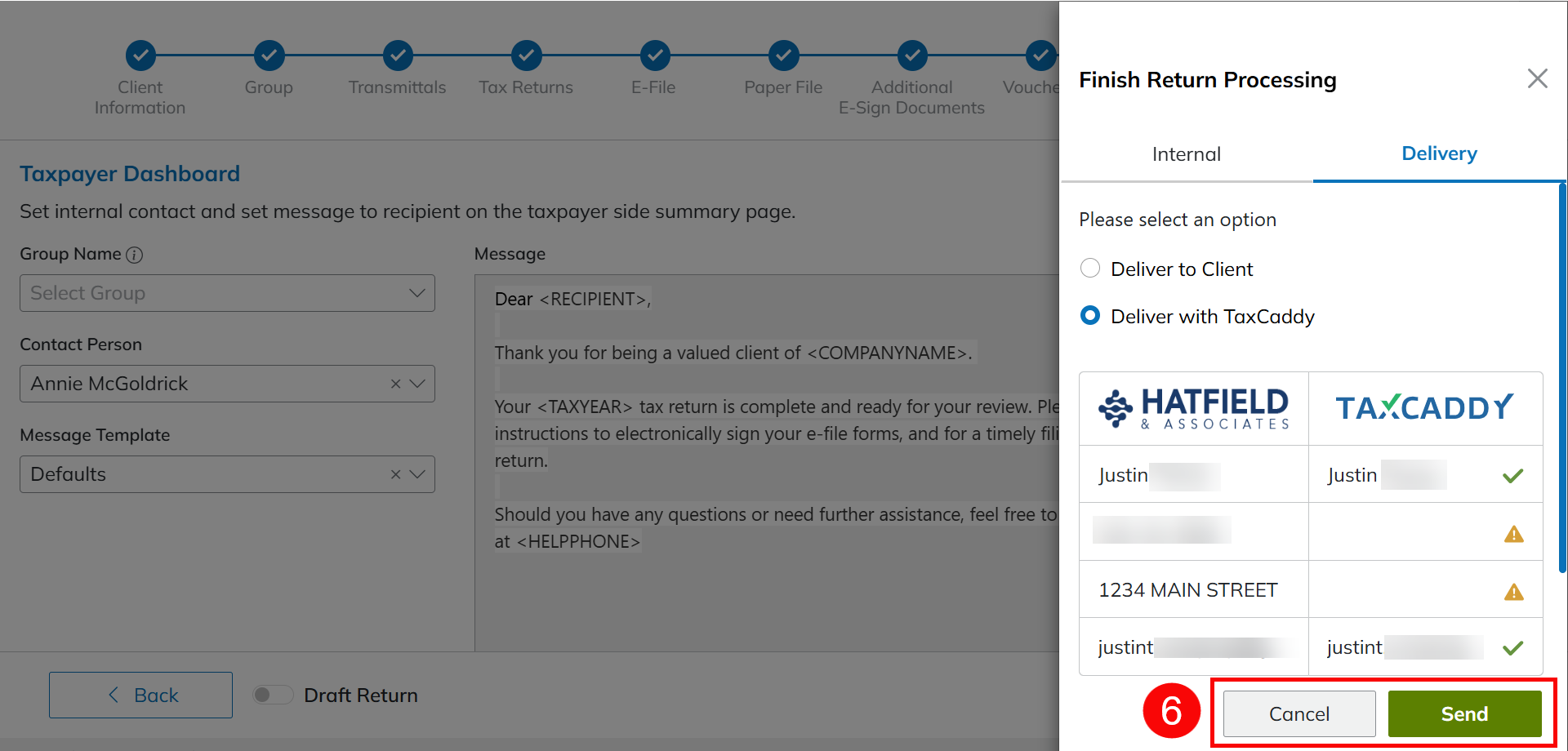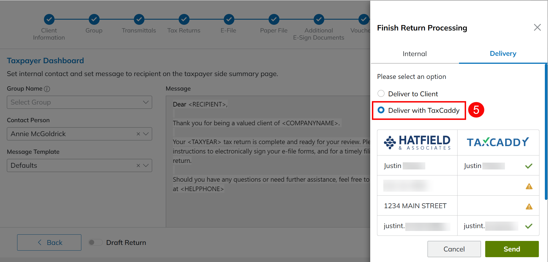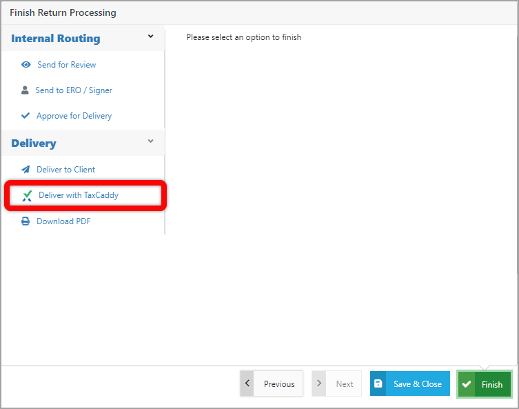 - Select Deliver with TaxCaddy™.