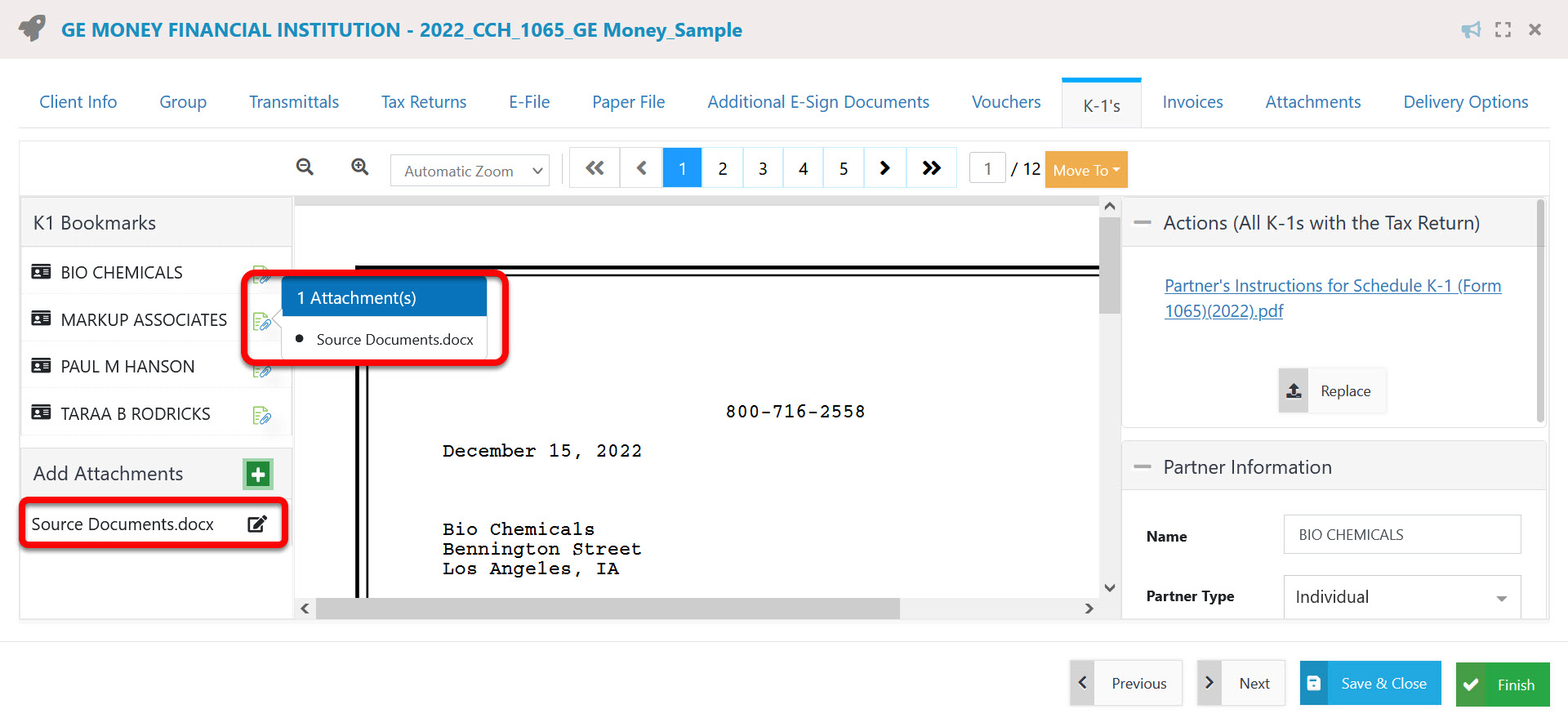 When the client or the partner downloads the K-1 documents, the attachments will be included.