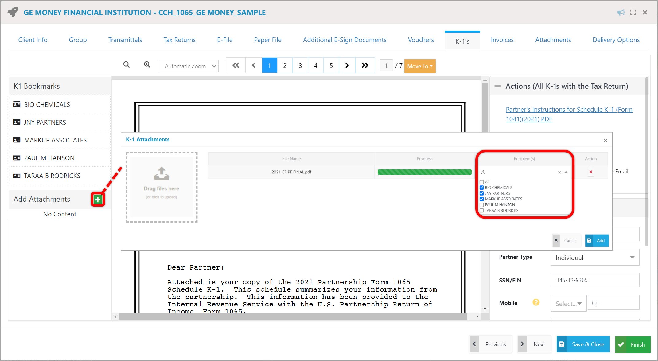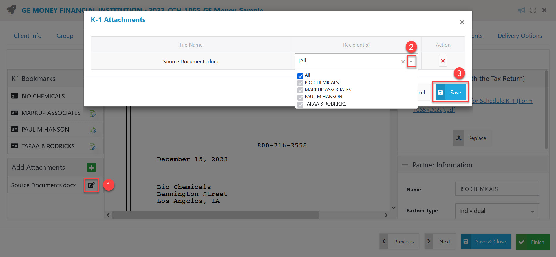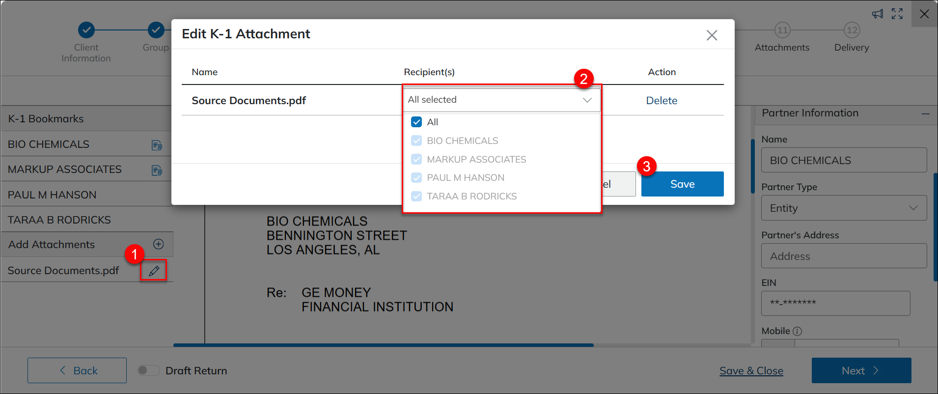 Edit recipients of a K-1 attachment