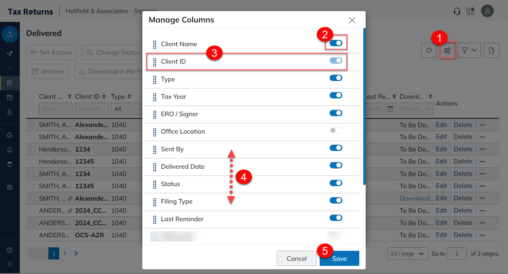 See a list of Names, Client IDs, and Email Addresses associated with this return in the Client Portal. This option also displays items outside of returns, like Extensions or Organizers.